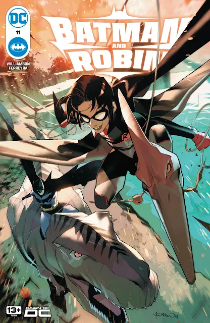 Batman e Robin #11 inicia um novo arco que envia Batman e Robin para a Ilha dos Dinossauros e é escrito por Joshua Williamson e acompanhado por Juan Ferreyra nas tarefas de arte com Steve Wands retornando como letrista.