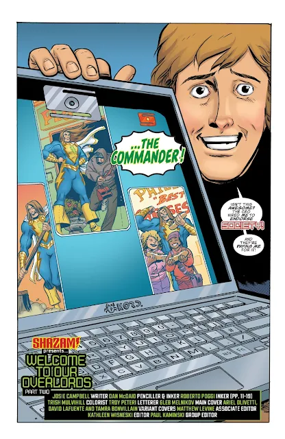 O início do arco de Shazam #17 coloca Freddy Freeman no centro da ação, agora assumindo a identidade de The Commander, um super-herói imerso em novos poderes e com uma visão mais pragmática sobre o papel dos heróis no mundo moderno. Freddy, sempre um personagem mais secundário e enérgico nas histórias anteriores, ganha um espaço significativo nesta edição, entrando em confronto com Billy Batson e The Captain, o alter ego de Shazam. Esses conflitos, aparentemente banais e derivados de um triângulo amoroso, rapidamente ganham complexidade, mostrando as distorções psicológicas e os dilemas morais que surgem quando amigos e heróis se veem em desacordo, especialmente quando suas próprias inseguranças e desejos são colocados à prova.
