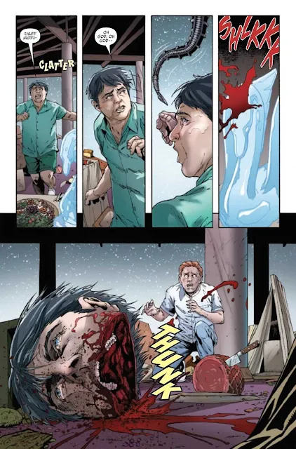 O ponto de partida de Alien Paradiso #1 envolve um negócio criminoso que dá errado, resultando na infecção de um dos envolvidos pelos xenomorfos, que começam a se espalhar pela colônia. A introdução dessa ameaça alienígena em um lugar de férias é uma ideia criativa, pois mistura o terror visceral com o mistério de um esquema criminoso que não parece ter uma explicação óbvia. A verdadeira pergunta aqui é: como os xenomorfos chegaram até Paradiso? E, ainda mais intrigante, qual é o motivo por trás dessa nova infestação? Foxe deixa várias lacunas e perguntas abertas no início da série, o que cria uma tensão crescente. Mesmo que a motivação dos xenomorfos e a intervenção da ajuda externa ainda não estejam claras, a ação e o terror no ambiente são suficientes para manter o leitor investido na história.